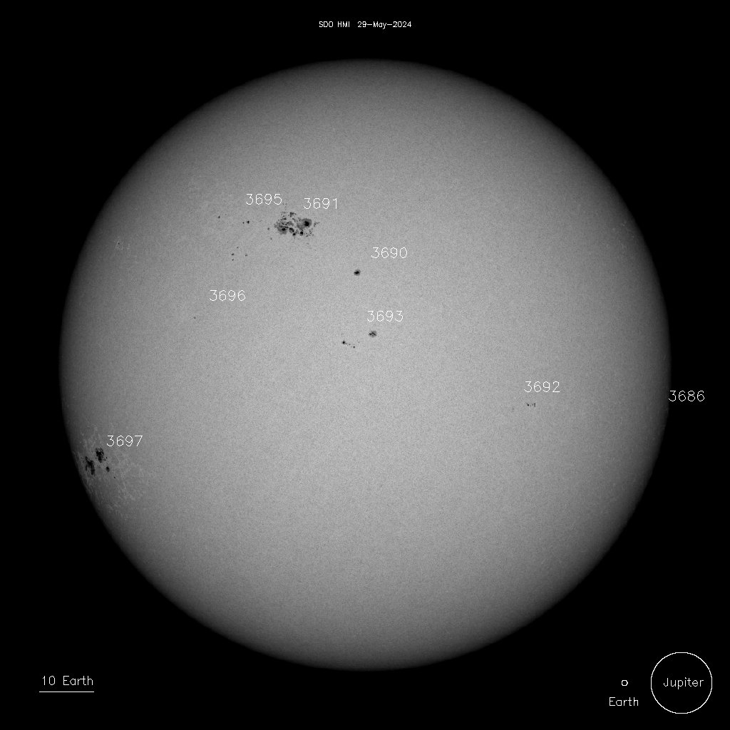 Η γιγάντια ενεργή περιοχή του Ήλιου, AR3664, που ήταν υπεύθυνη για την ιστορική γεωμαγνητική καταιγίδα της 11ης Μαΐου, ξαναγίνεται ορατή από την Γη, καθώς περιστρέφεται ο Ήλιος.